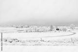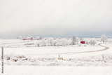 Rural landscape view with snow and hoarfrost a cold winter day