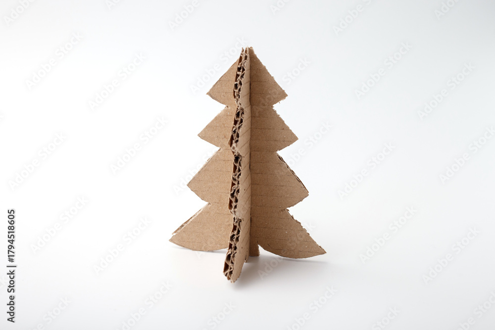 Eco cardboard Christmas tree decoration, handmade DIY craft for holiday marketing, kids activities, sustainable packaging, educational or creative business use