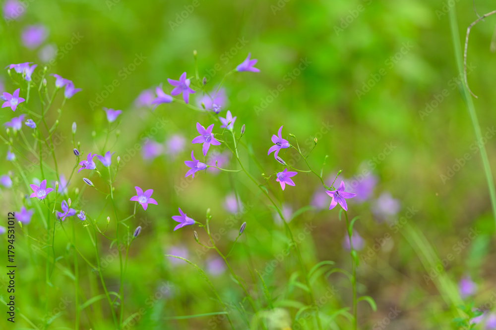 Delicate and Beautiful Purple Wildflowers Growing in a Lush Green Field of Nature