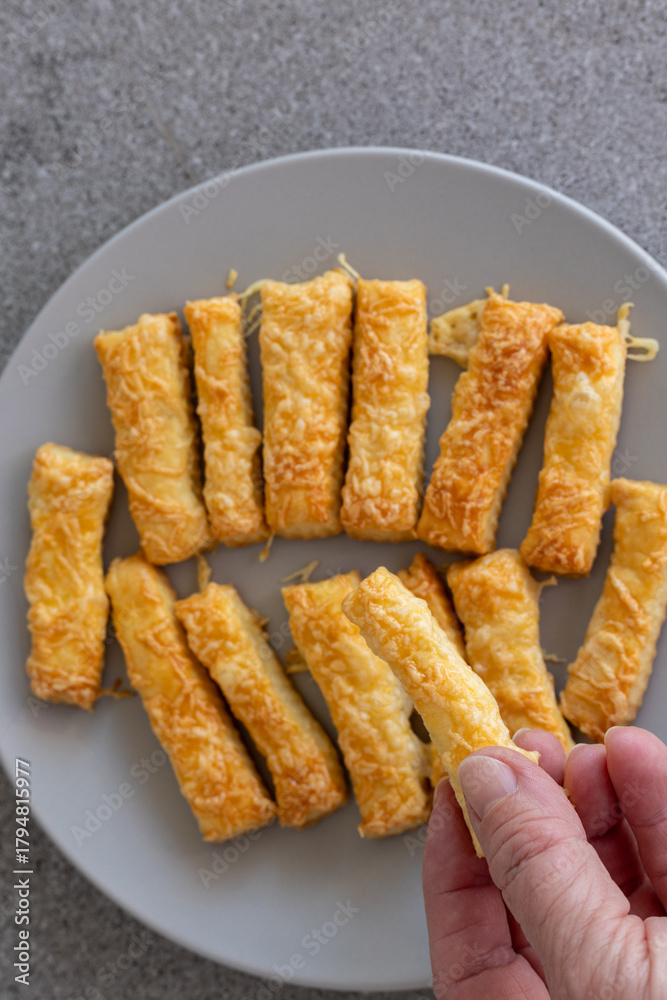 hand holding a homemade cheese stick