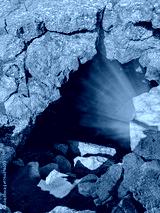 Grjótagja volcanic cave, with its blue, hot thermal water located near Lake Mývatn, Iceland
