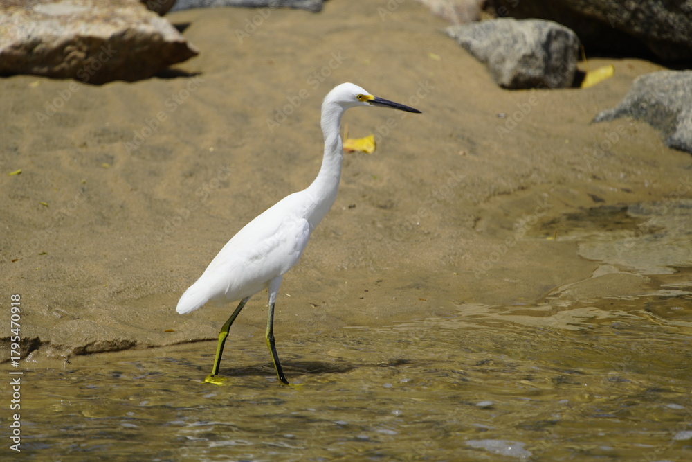 The cattle egret (Bubulcus ibis) is a cosmopolitan species of heron (family Ardeidae) found in the tropics, subtropics, and warm-temperate zones. Fortaleza – Ceará, Brazil.