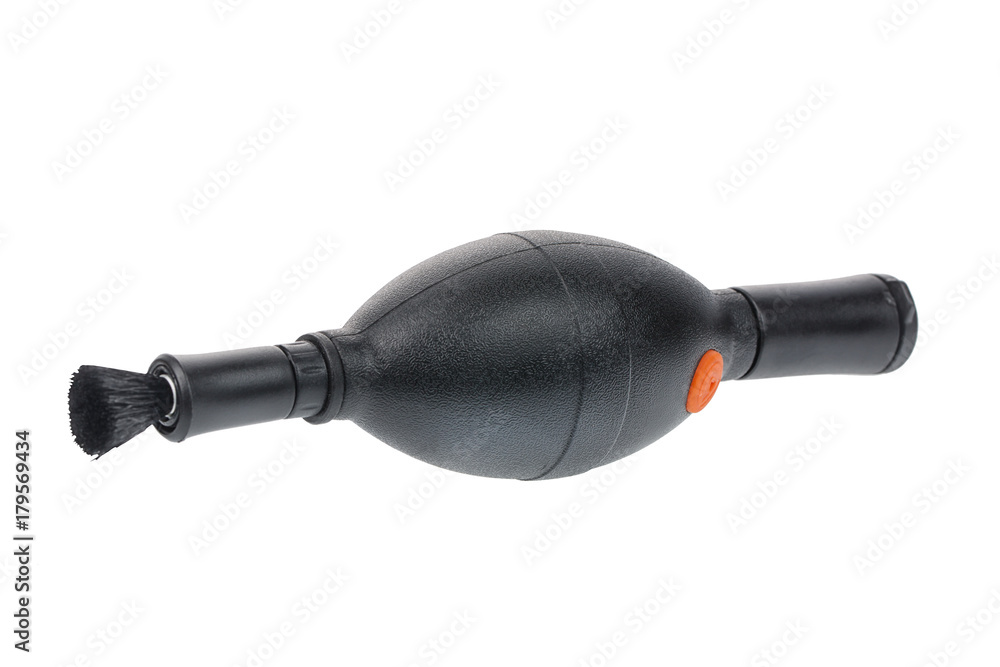 Rubber dust air blower pump for camera and lenses. Professional photo equipment dust cleaning device.