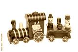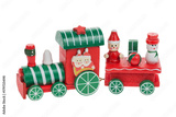 Christmas train and snowman with santa and friends isolated on white background. Christmas decoration