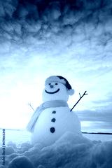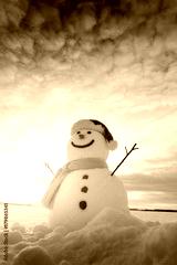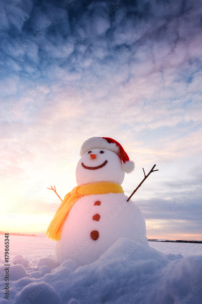 Funny snowman in Santa hat