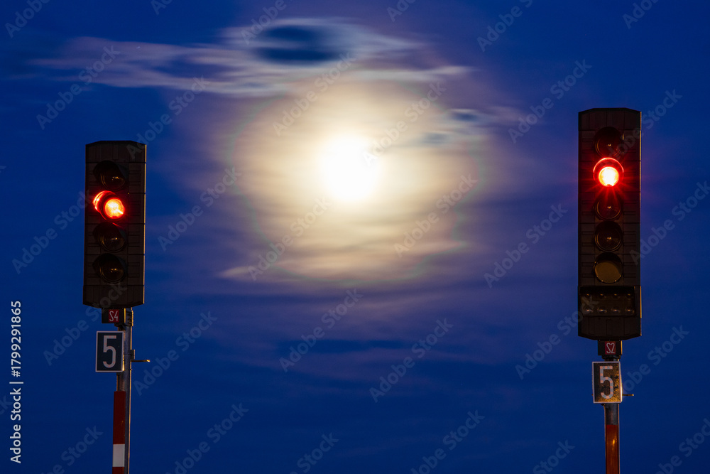 night light at the small railway station