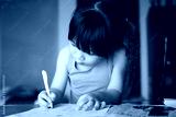 Asian girl studying learning writing homework at home