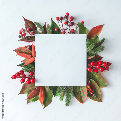 Creative Christmas layout made of natural winter decoration. Flat lay. Nature New Year concept.