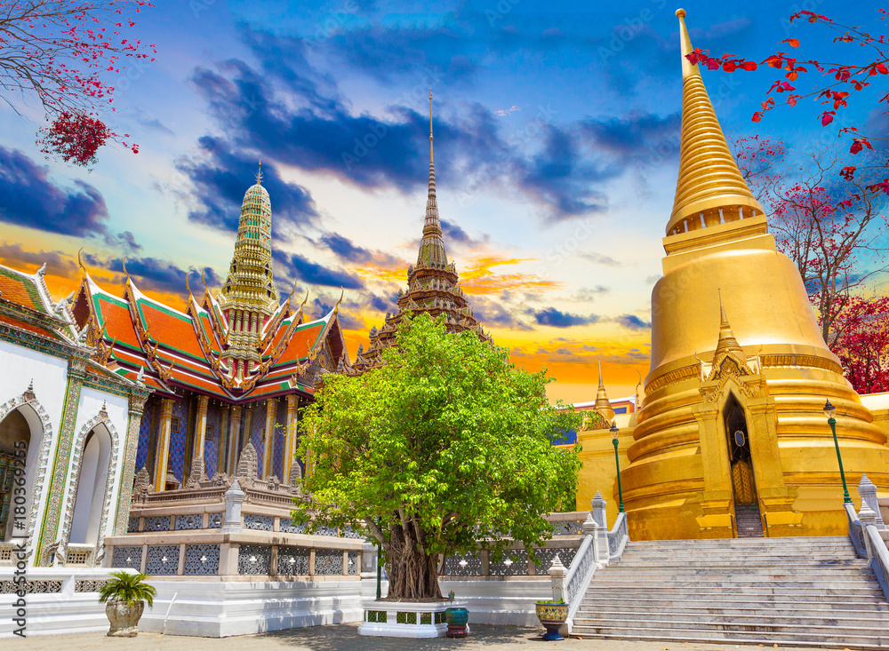 Palacio real en Bangkok ,Tailandia.Templos y arquitectura en Asia.Paisaje de atardecer.Viajes y turismo