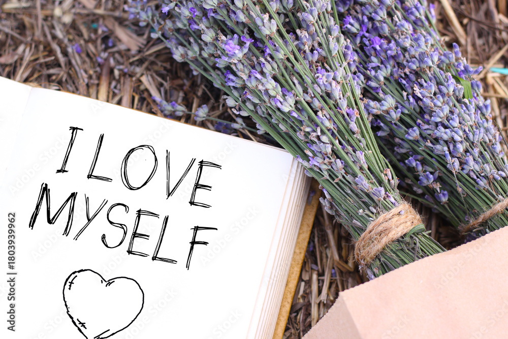 I love myself - motivational phrase is shown using the text and photo of flowers