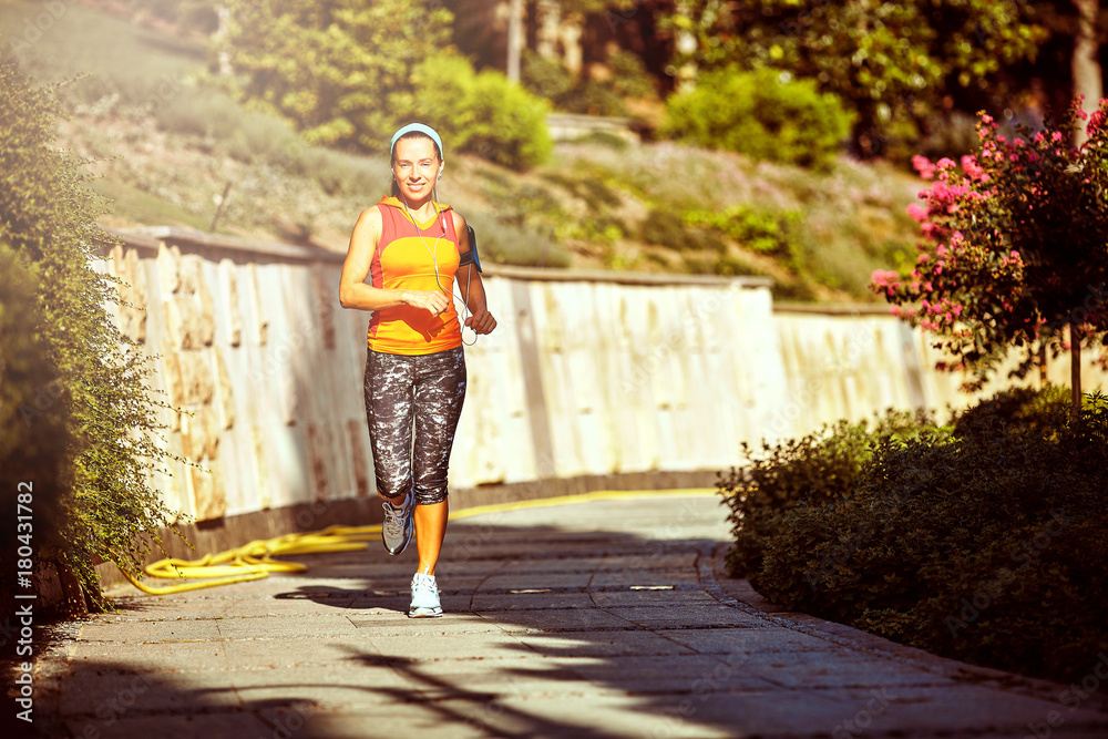 woman running around in the park in the morning