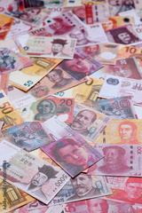 Money background, currency exchange, paper banknotes from different countries. Money cash currency