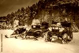 Winter Motorcycle. Snowmobile. Winter ATVs. Winter ATVs in winter against the backdrop of the mountain.