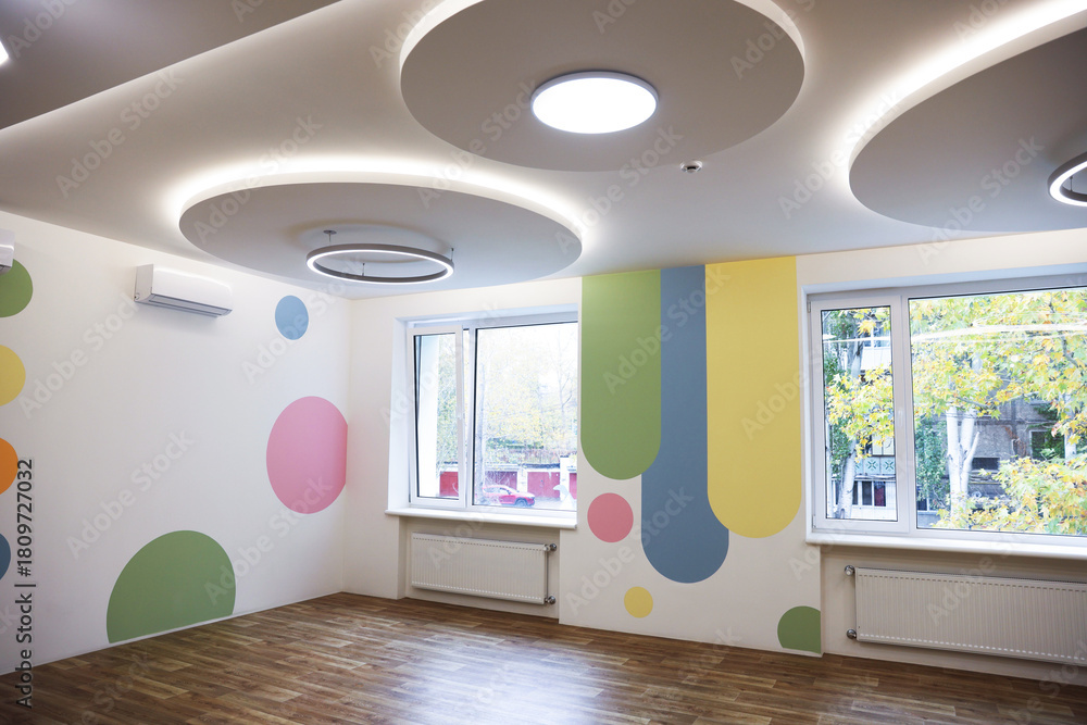 Empty room with stylish design at school