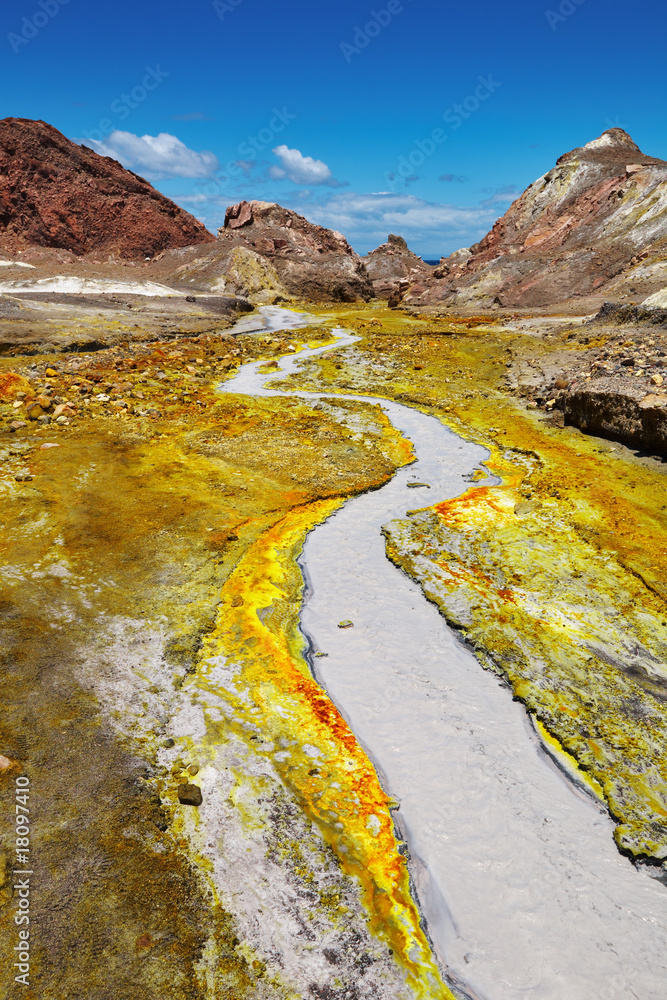 Hot spring in volcanic crater, White Island volcano, New Zealand
