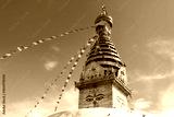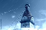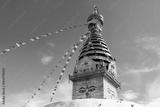Prayer colorful buddhist flags fluttering in the wind on the Swayambhunath stupa in Kathmandu, Nepal.