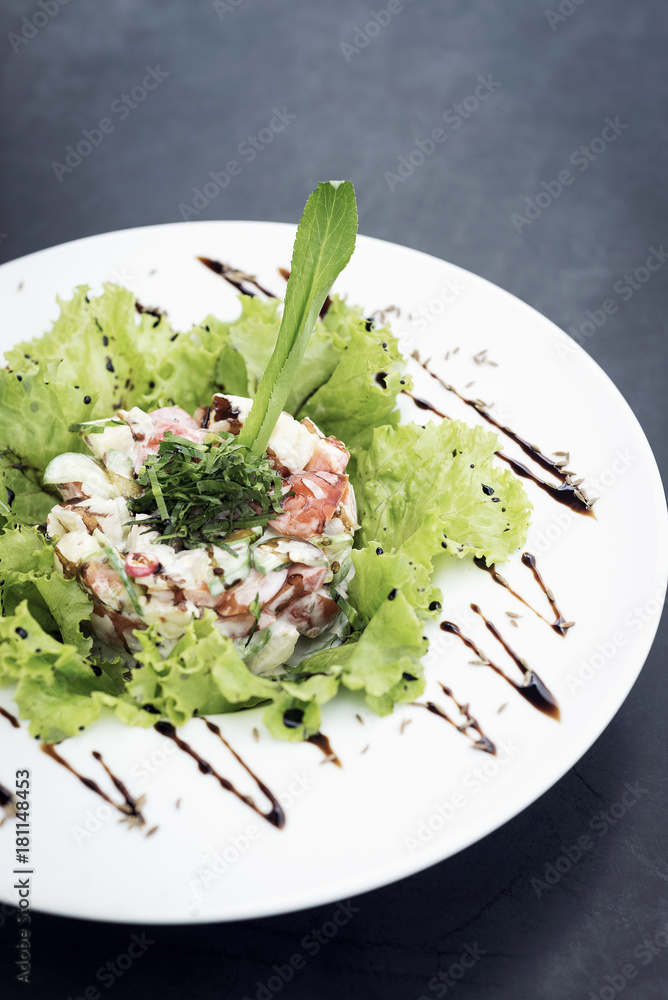 gourmet prawn cocktail salad with apple celery and spicy yoghurt