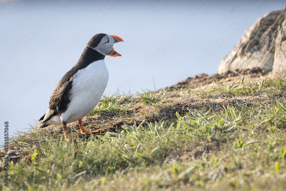 Atlantic Puffin Calls Out on a Rocky Cliff