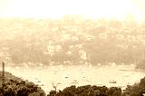 Sydney suburb with picturesque bay in the rain