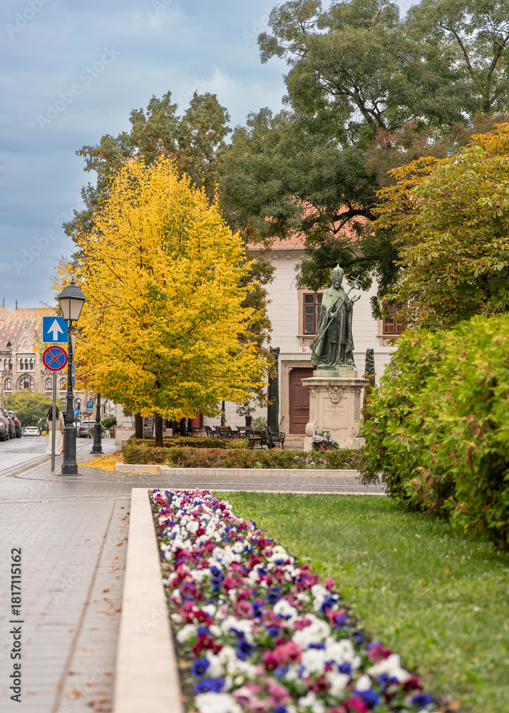 A part of Buda royal castle in Autunm. Amazing colorful trees sorrounding the historical old buildings.