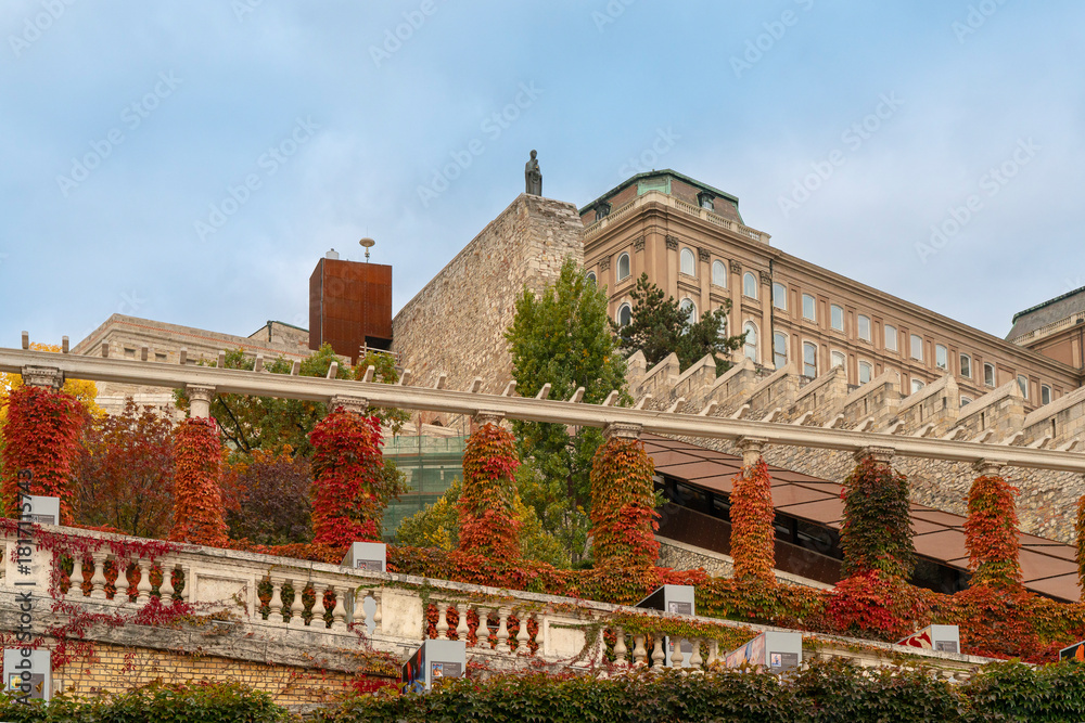 A part of Buda royal castle in Autunm. Amazing colorful trees sorrounding the historical old buildings.