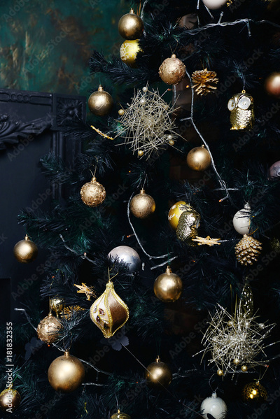 Christmas tree decorated spruce-toys
