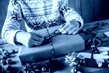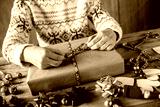 Hands wrapping Christmas gifts