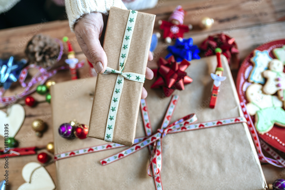 Hand with Christmas gifts