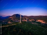 A Scenic View of Wind Turbines on Rolling Hills During Sunset, Highlighting the Integration of Renewable Energy in Natural Landscapes in Italy