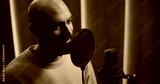 Close Up of Experienced Dubbing Actor Recording Dynamic Dialogue Lines. Face Shows Powerful, Controlled Expression Leans Toward Studio Microphone, Shaping Vocal Tone With Precision, Emotional Depth.