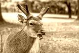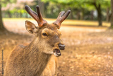 Portrait of wild Nara deer in Nara, Japan. Popular wild deer in Nara Park, a public park where over 1,200 wild sika are free and are considered a natural monument.