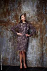 Beauty woman model wear stylish design trend clothing wool cashmere suit casual formal office style for work meeting model secretary diplomatic protocol office uniform brunette hair makeup.