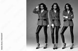 Sexy pretty beautiful woman fashion model brunette hair woman wear lather pants jacket business for party office gray background makeup lady trend for fall street style success accessory glamor.