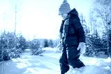 happy child playing with snow at resort in winter against background of forest outdoor. Games and activities for Christmas holidays in winter