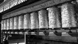 Gold tibetan prayer wheels made from metal at Swayambhunath Temple - Monkey Temple, Kathmandu, Nepal