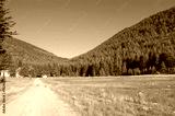 Highland plateau in cedar forest in alpine zone. Mountain way, Turkey
