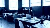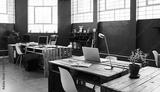 Interior of a large contemporary office space with no employess