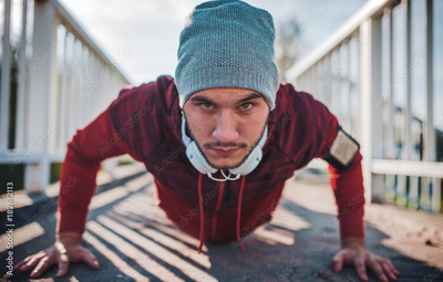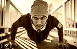 Young sportsman during his training outdoors. Sport, fitness, street workout concept