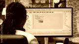Woman in home office looking at UI on PC screen, typing and executing programming code. Coding application UI used by IT developer writing and testing code in modern apartment, camera B
