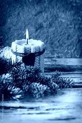 knitted candle with fir tree for traditional Christmas decoration