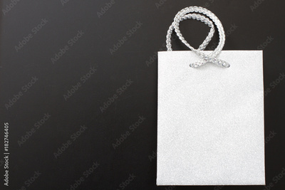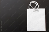 Empty white shopping bag for advertising and branding on black background. Mock up and copy space