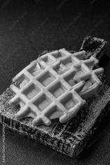 Belgian waffles, a healthy sweet breakfast dessert, food background. Belgian waffles