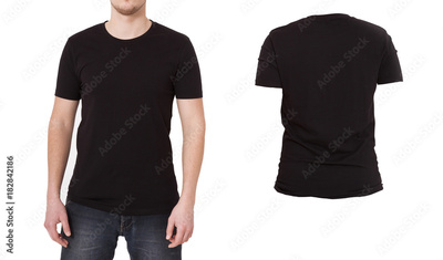Macro Shirt Template. Black Blank Shirts Front Back View isolated. Mock Up, Copy Space