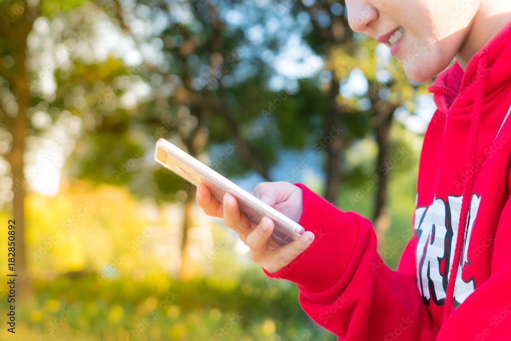 young gorgeous woman is chatting on mobile phone to her friends