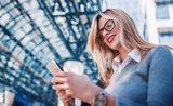 Business woman talking on a mobile phone outdoor. Business, education, lifestyle concept