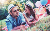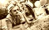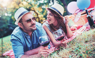 Couple enjoying picnic together. Love and tenderness, dating, romance, lifestyle concept