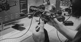 Hands Working on Internal Electronics Drone. Persons Hands Carefully Integrating Internal Electronics and Connecting Antennae on FPV Drone Frame. Concept Precision Assembly and Component Integration.