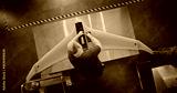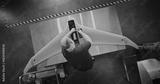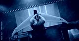 Worker Assembling Drones For National Security. Adult Man in Camouflage Engaged in Specialized Assembly of Large, High tech Drone on Metal Workbench. Future of National Security Production. Top View.