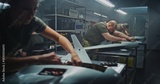 Woman Engineer in Military Uniform Meticulously Installs Internal Components Into Large, Strategic Surveillance UAV. Concept of Professional Expertise and Crucial Role of Women in Defense Technology.