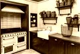 Kitchen design in Scandinavian style. Comfortable, functional furniture, simple forms and a large number of clay flower pots with cacti, paportnikami and succulents.